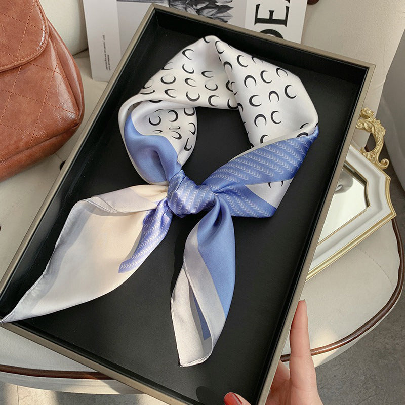 À porter comme une signature visuelle, il se marie idéalement avec une tenue minimaliste ou monochrome, qu’il vient rehausser d’une touche contemporaine. Noué au cou, dans les cheveux ou en accessoire de sac, il affirme un style moderne et affirmé, parfait pour le printemps et l’été.
